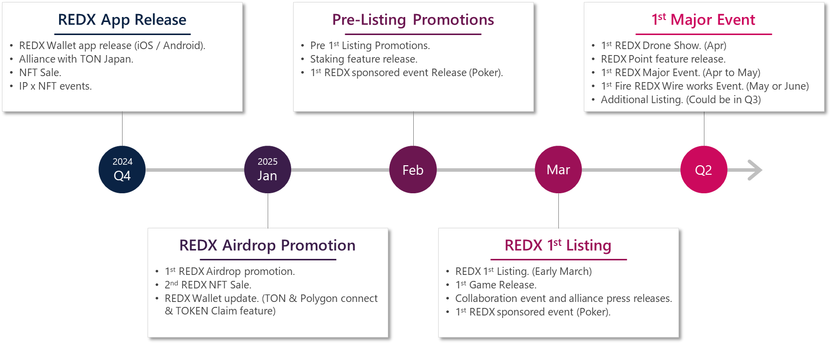 2024年秋にREDXアプリをリリース。2025年3月の暗号資産取引所への上場を予定しています。
